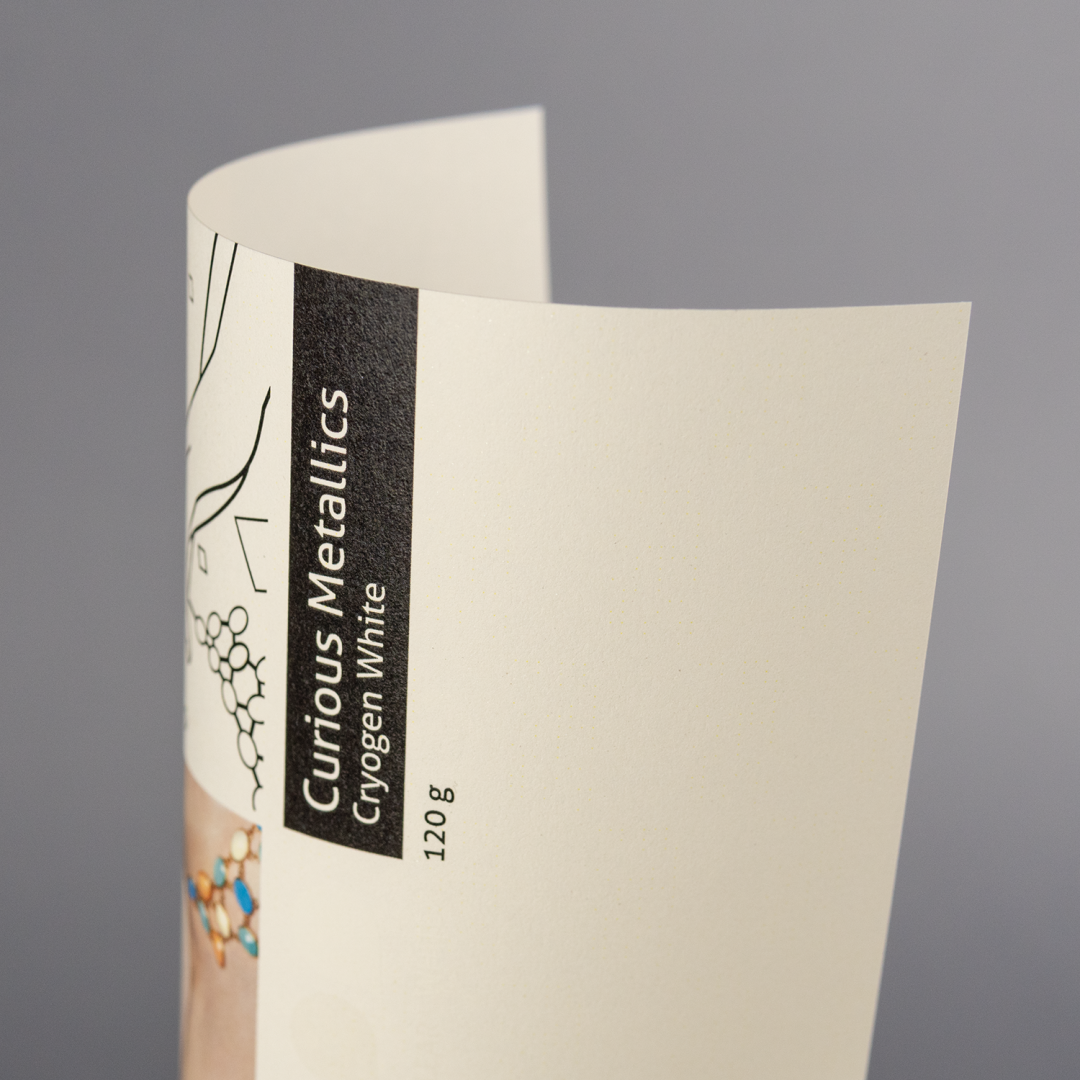 A Curious Metallics egy anyagában csillogó (fémmentes) pigmentet tartalmazó kollekció az Arjowiggins papírgyártól. FSC minősítést szerzett és elemi klór mentes.