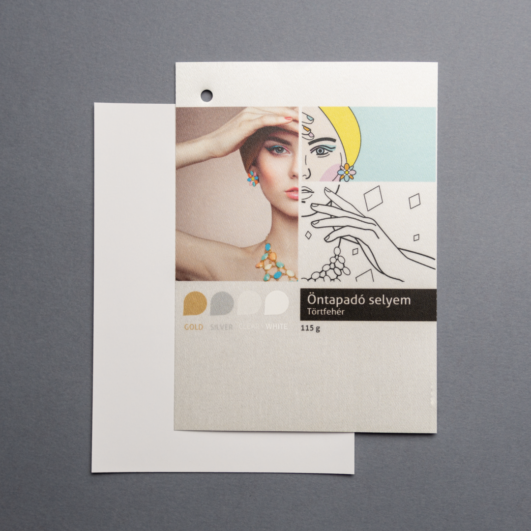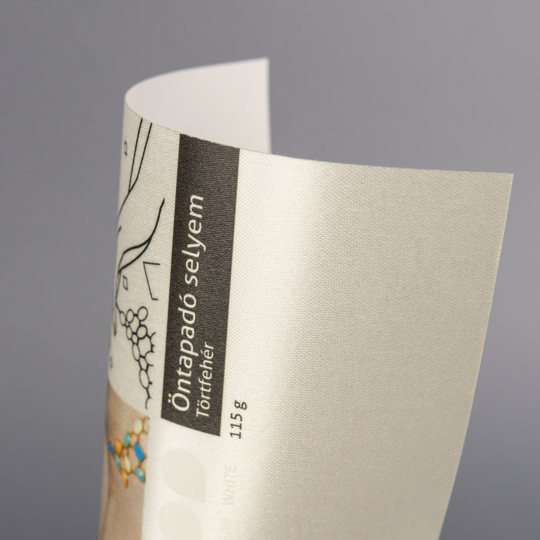 Fényes, selyem, öntapadó alapanyag. Exkluzív boros címkékhez, csomagolásokhoz ajánljuk. A selymen a színek mélyebbek lesznek, de fakóbbak mint papíron vagy vinilen, ezért érdemes egy próbanyomatot készíteni végleges döntés előtt.