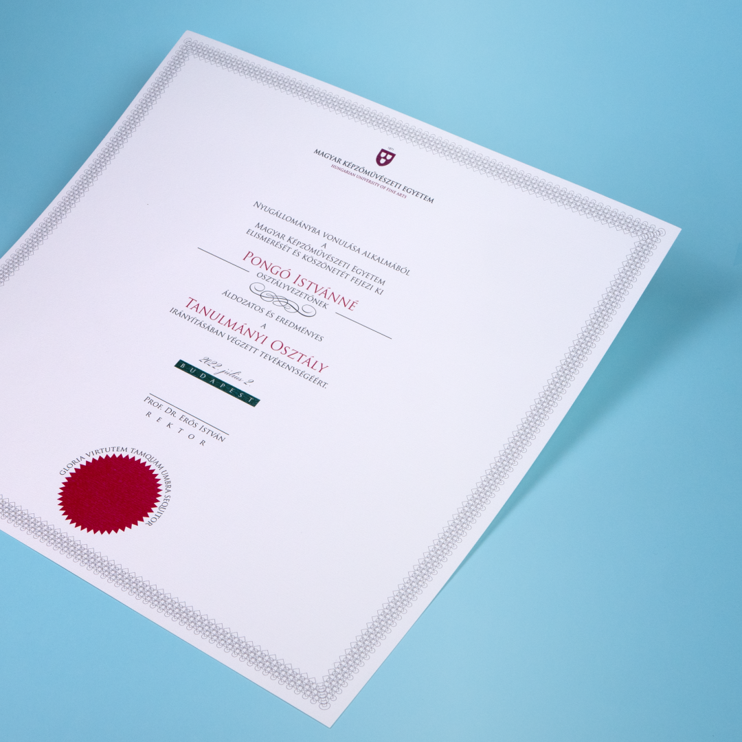 Design / Avoid using fonts smaller than 5 pt or with very thin lines—their printability depends largely on the smoothness of the chosen substrate. For creative papers with different front and back sides, please specify which side the design should be printed on. Gold and silver elements may not show well on very thin lines or small areas. For deep black areas, we recommend using CMYK 60/50/50/100. Due to possible trimming inaccuracies, avoid using thin or unprinted borders around the edge of the certificate—even a 0.5 mm shift can make the border look noticeably uneven. If you're using an online editor, keep in mind that while it's convenient, it may not allow you to export files suitable for professional printing.
