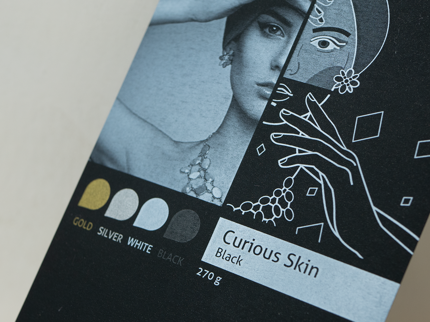 A Curious Skin egy homogén, bársonyosan matt felületű kollekció az Arjowiggins papírgyártól. A termékcsalád FSC tanúsítvánnyal rendelkezik, ECF elemi klór mentes, újrahasznosítható és pH-semleges.